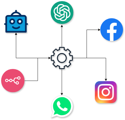 Enlazamos todos tus canales de comunicación, Facebook, Instagram, WhatsApp, ChatBot para que solo tengas que gestionarlo desde un solo lugar y mejoramos tiempos de respuesta con IA